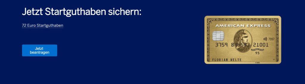 Die goldene Amex Karte ist mit einem Startguthaben von 72 Euro in den ersten 6 Monaten kostenlos. Dies beinhaltet auch eine kostenfreie Gold-Partnerkarte. Die anfallende Jahresgebühr kann auch mit 14.000 Bonuspunkten bezahlt werden. Mithilfe von Sonderaktionen und Turbopunkten können Sie diese Punkte relativ schnell sammeln.