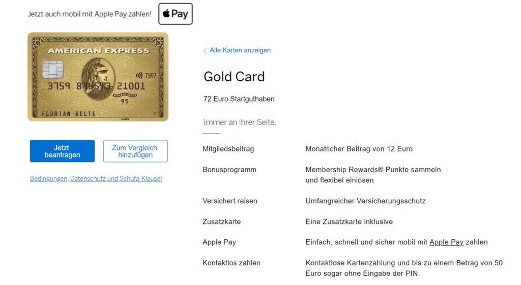 Die Amex Gold-Karte ist insofern besonders interessant, da sie zwei interessante Vorteile vereint: Erstens ist es eine Premium-Kreditkarte mit viel Nutzen, und zweitens erhalten Sie einen äußerst wertvollen Bonus für Neukunden im Wert von 72 Euro. Damit bekommen Sie für 6 Monate eine völlig kostenlose Kreditkarte bei einem Umsatz von 3000 Euro oder mehr pro Jahr. Allein aus diesem Grund ist die Karte im Vergleich zu anderen Modellen äußerst interessant, zumal der Bonus in diesem Fall sehr wertvoll ist.